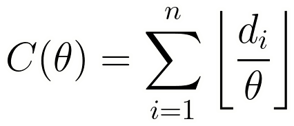 Die Floor-Funktion ist der Grund dafür, dass die Kapazität zusammenbricht, wenn die Fokusblöcke nur leicht unter deiner Schwelle θ liegen.
